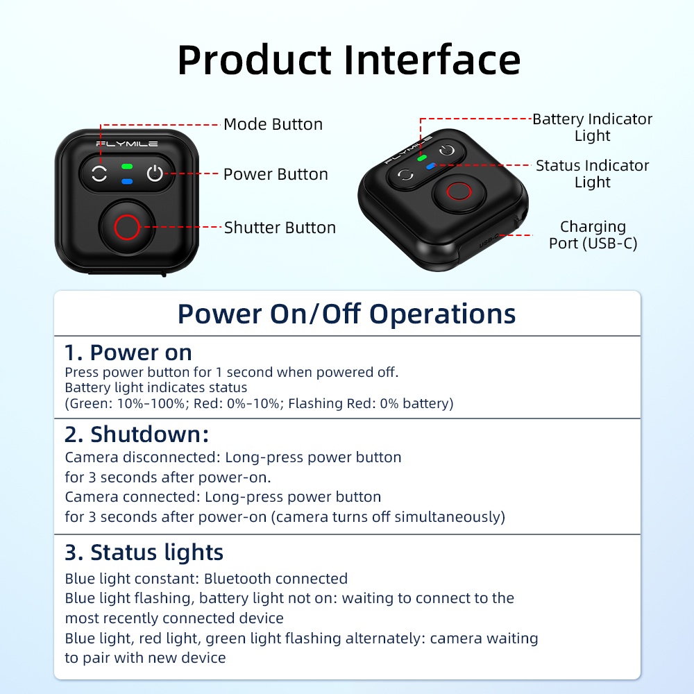 1. Upgrade the smart chip for more stable connection, sensitive response, rejection of delays, and better capture of moments 2. With its compact size and lightweight design, it can be easily carried around, allowing you to capture exciting moments without worrying about device burden 3. The remote control distance is up to 51m, which can basically meet your shooting needs 4. Long lasting battery life · Fast charging saves time. Type-C interface has a charging time of 3H and a powerful battery life of 96H, helping you enjoy your creativity 5. Multiple combinations can be used to connect different photography accessories 6. Waterproof design · Wind and rain resistant IPX4 waterproof shell, worry free for rainy/outdoor shooting, strong durability against splashes and moisture