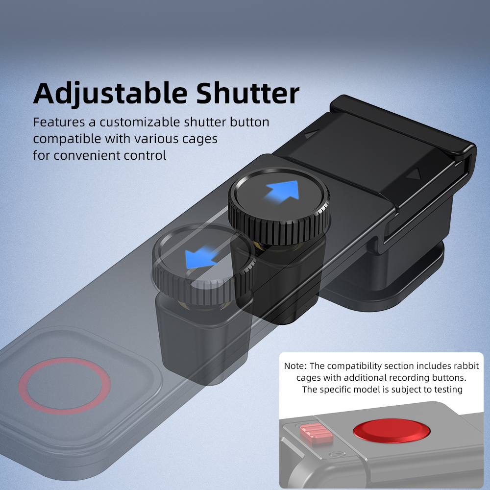 Fully Adaptable Control And Expansion Core Equipped with an adjustable shutter button compatible with various cage models for convenient shooting control. Features a reserved 1/4" threaded hole for connecting tripods or extension rods, and a top cold shoe interface supports simultaneous attachment of accessories like fill lights and microphones.