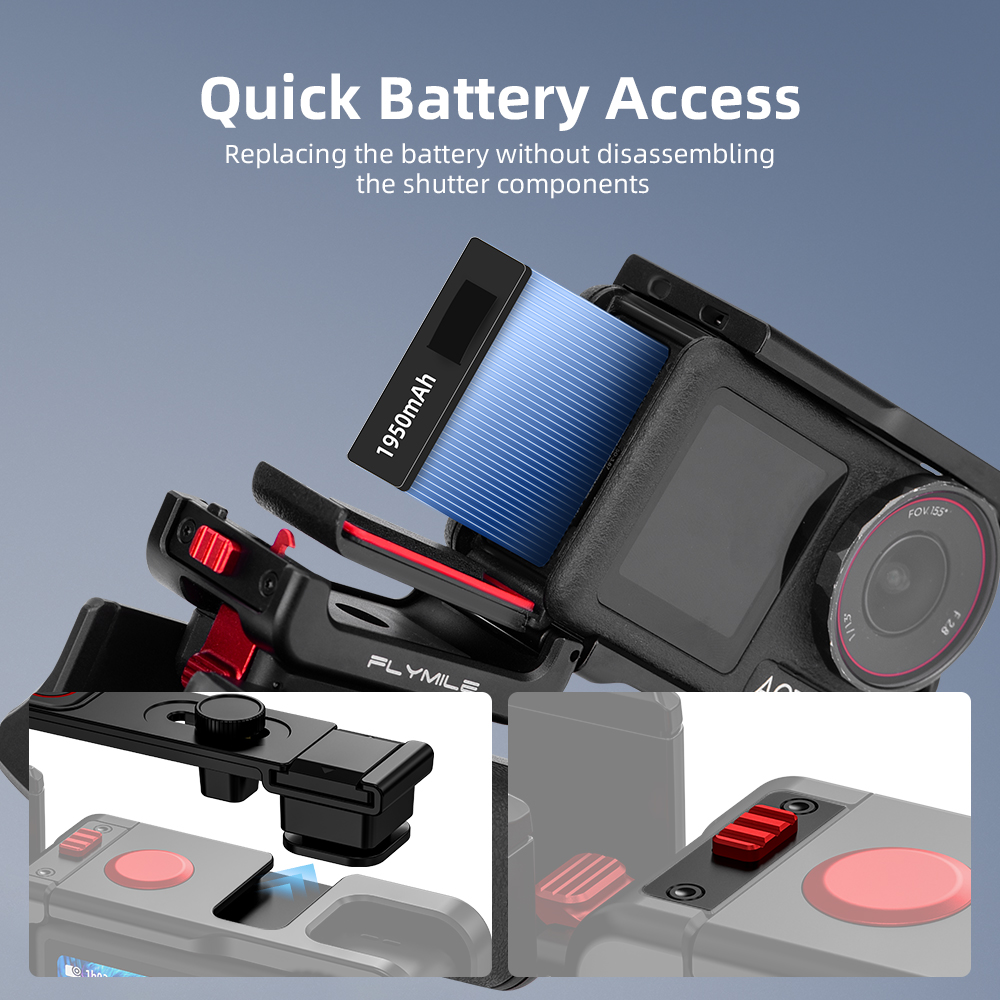 Magnetic Quick-Release And Modular Efficient Assembly Strong magnetic absorption combined with a two-claw locking structure enables rapid camera mounting and dismounting. The shutter module and grip can be quickly connected and separated with a simple press-and-click, allowing for battery replacement without detaching the handle, keeping your creative flow uninterrupted.