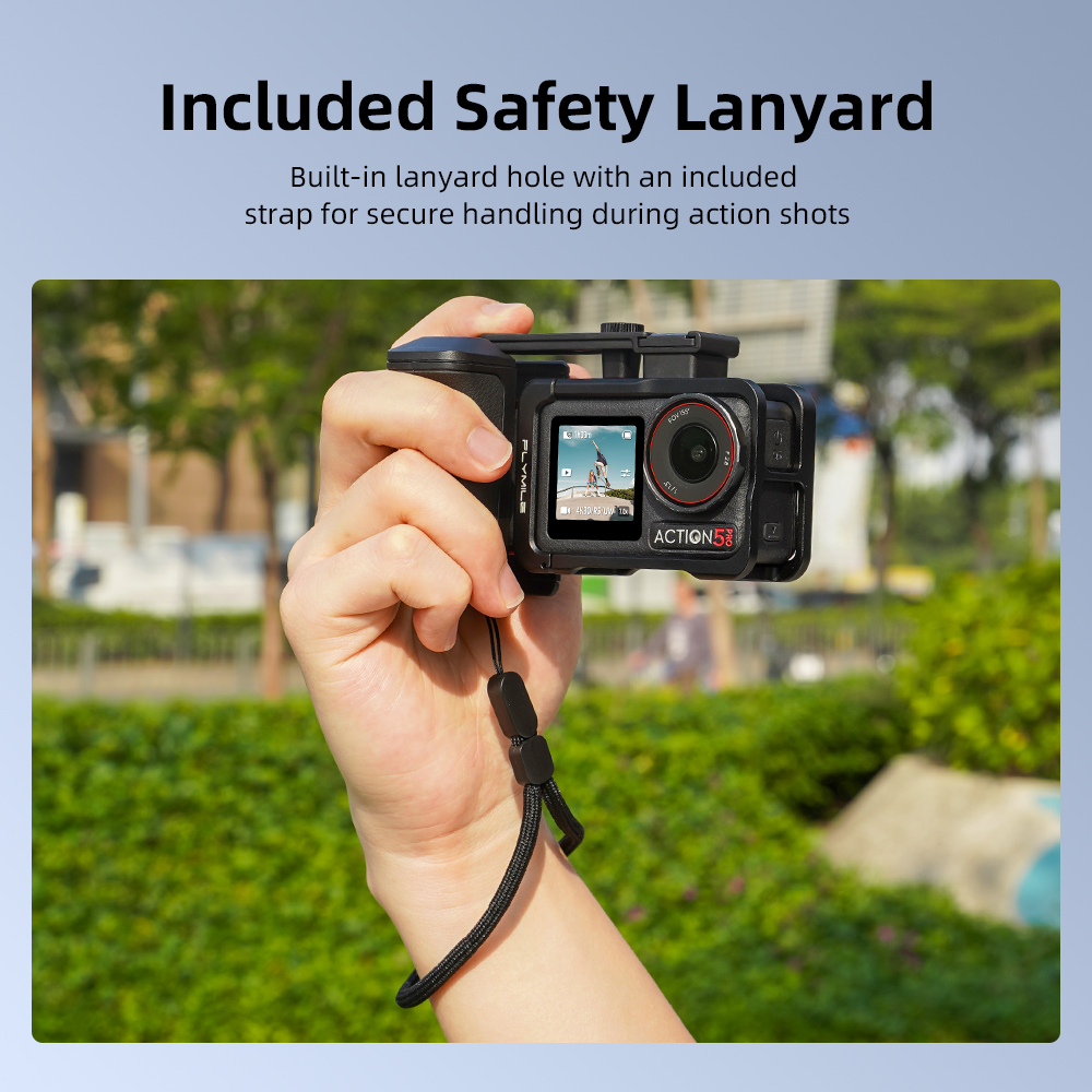 Detailed Design And Safety Assurance Carefully selected materials and meticulous craftsmanship ensure a reliable experience in every detail. Includes an anti-loss wrist strap that can be easily installed via the built-in lanyard hole, securing your gear during dynamic shooting like cycling or running.