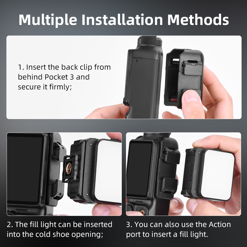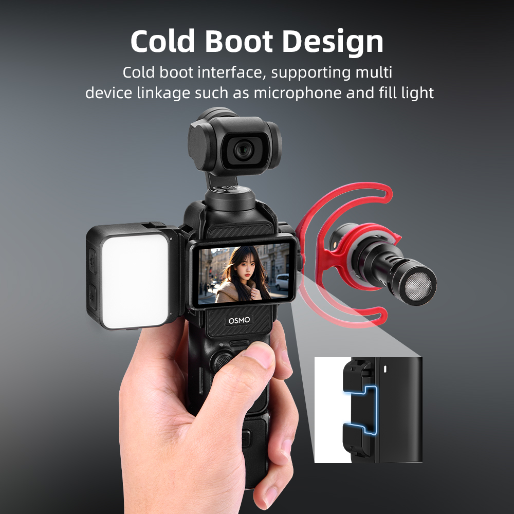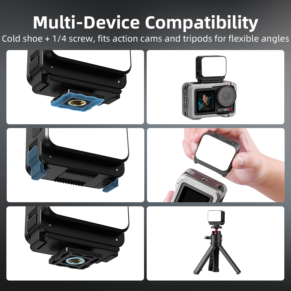 Multi-compatible interface, wide adaptation Cold shoe mouth 1/4 screw hole, compatible with mainstream action cameras, brackets, expand shooting angles