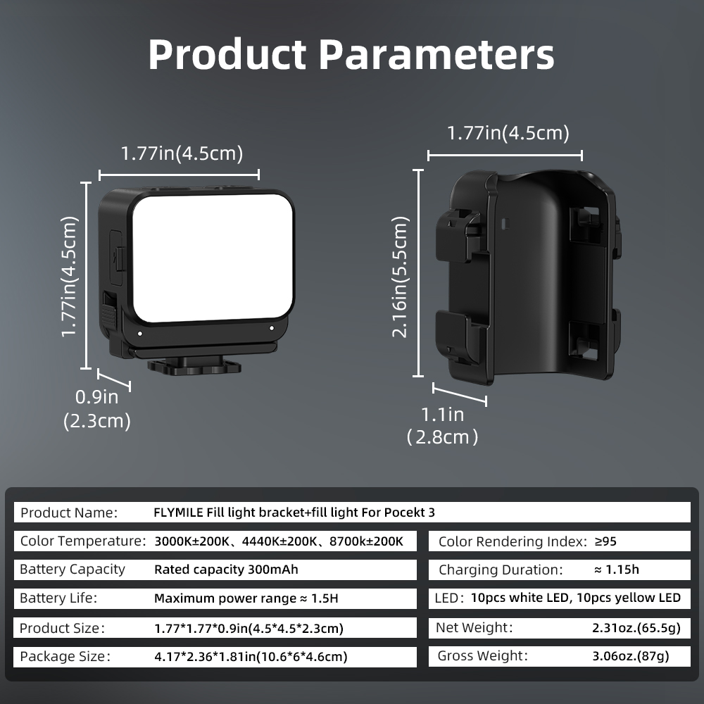 Three-tone light, uniform brightness 20 LED lamp beads, 3000K/4440K/8700K (±200K) trichromatic temperature brightness 150Lux, VLOG shooting high-definition fill light