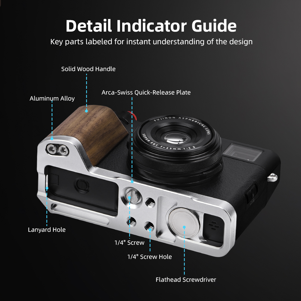 1.Aluminum & Solid Woodc,Durable and retro, adding unique texture to your camera.