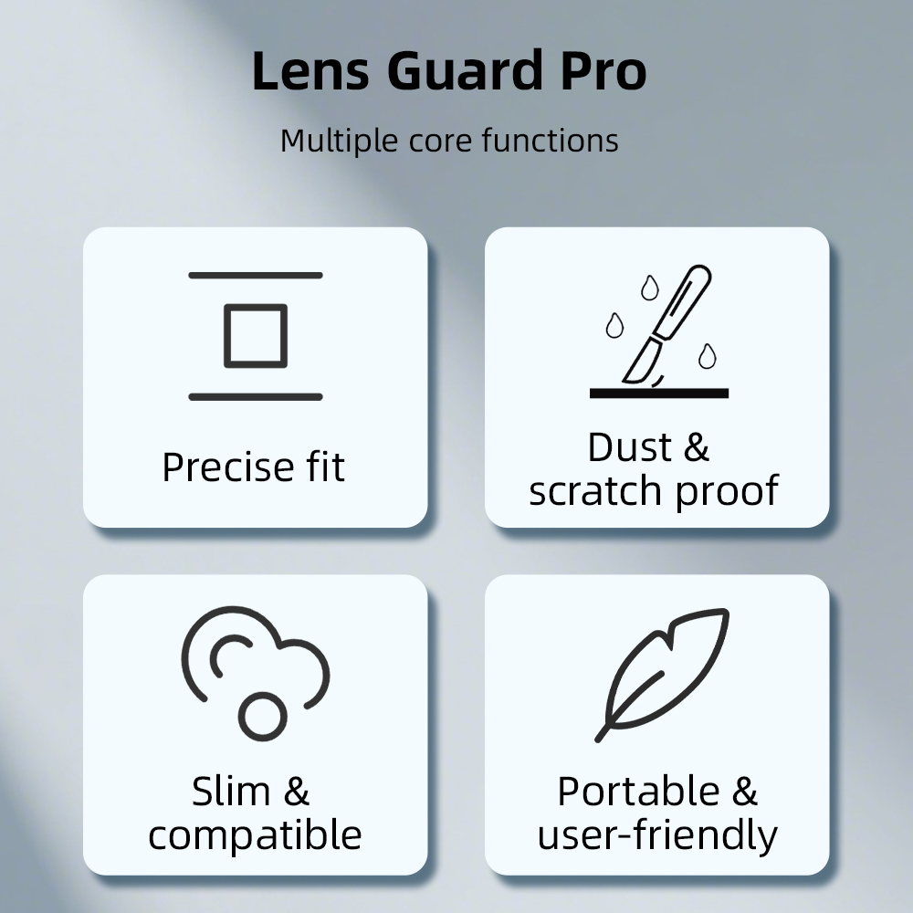 1.Compact Size, Full Protection,Creates a protective barrier against scratches and dust. 2.Precision Molded,Custom-designed for exact lens contour and secure fit. 3.Non-Slip Grip,Textured edges for easy installation and removal. 4.Soft Silicone,Flexible material protects against bumps and impacts. 5.Scratch Defense,Resists hard object scratches to keep lenses intact. 6.Dust-Free Ready,Remove cover to find clean lens ready for shooting. 7.Washable Design,Easy to clean and reuse while maintaining quality. 8.Feather-Light,Ultra-lightweight for effortless carry and use.