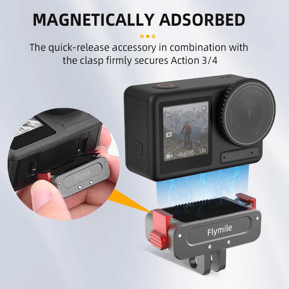 2.The quick-release accessory in combination with the clasp firmly secures Action 3/4.