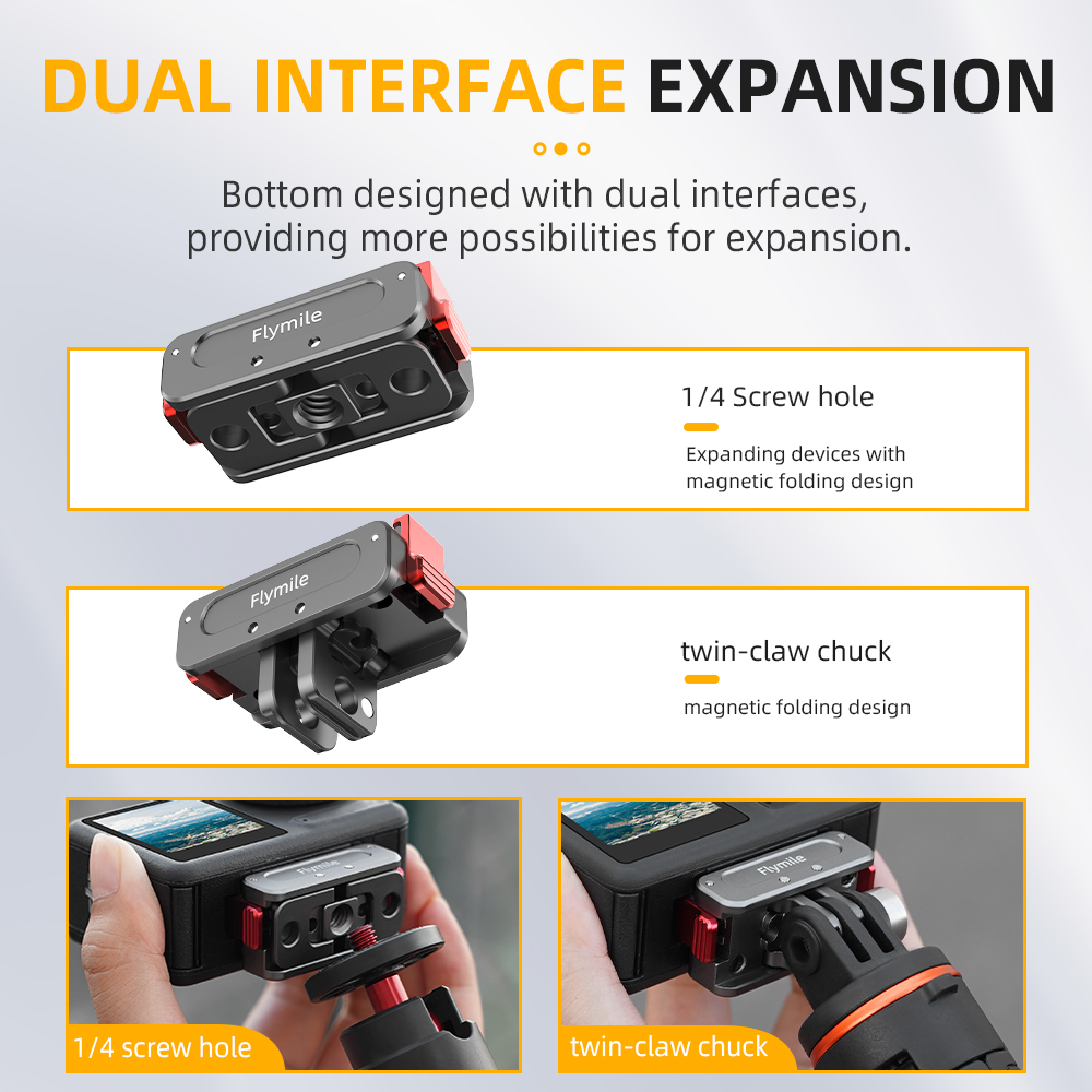 5.Bottom dual interface design, 1/4 screw hole, compatible with Action 3/4 expansion accessories.