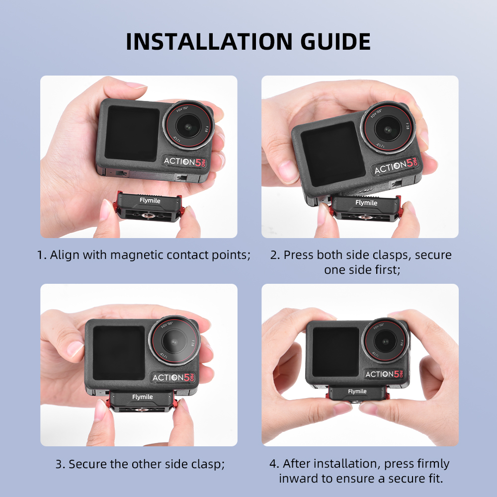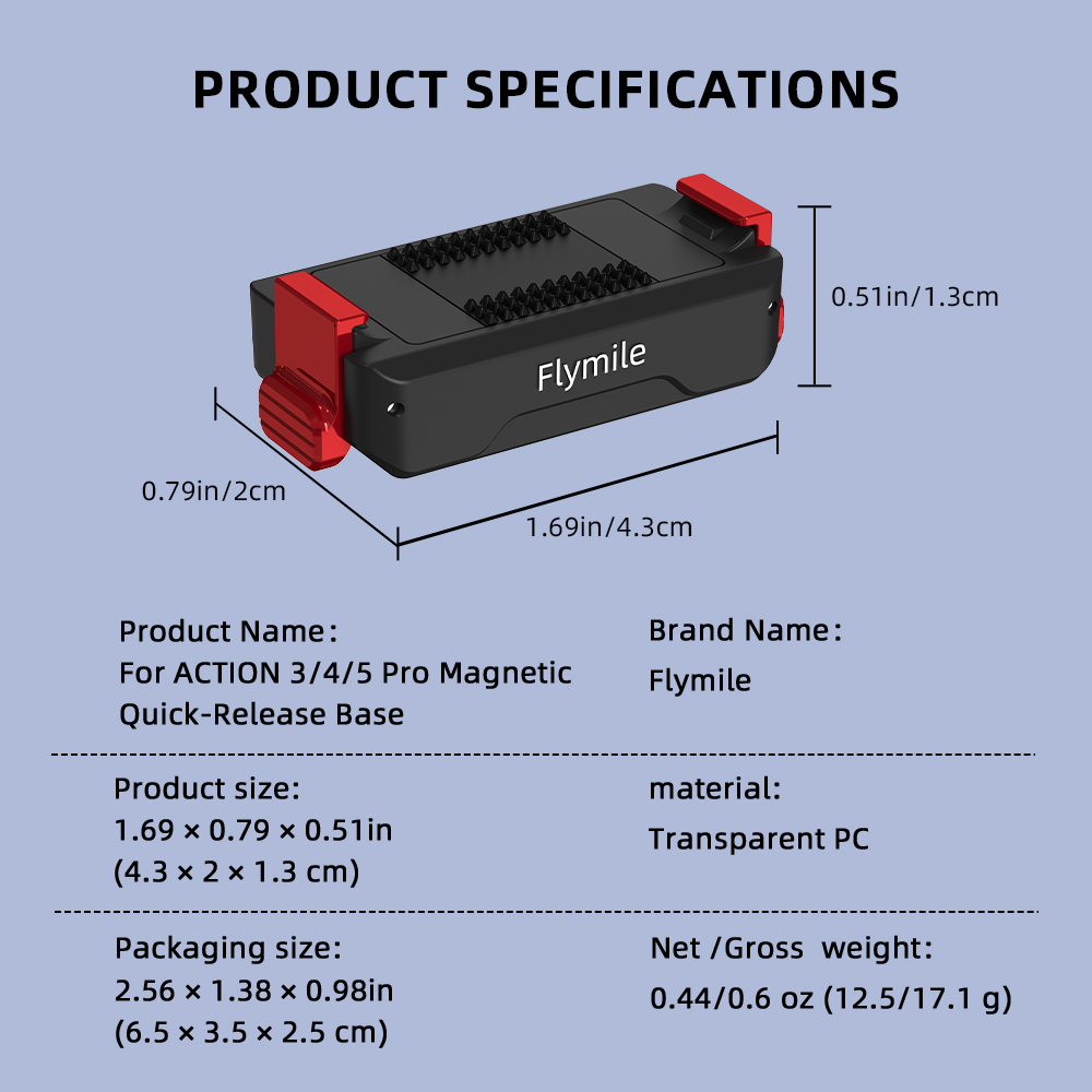 1.QUICK MAGNETIC SNAP2.DUAL-LOCK SECURITY3.STANDARD 1/4" THREAD4.BUFFER & DAMPING5.COMPACT & LIGHTWEIGHT6.QUICK HORIZONTAL/VERTICAL SWITCH