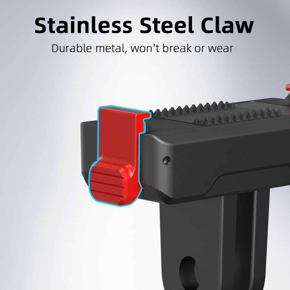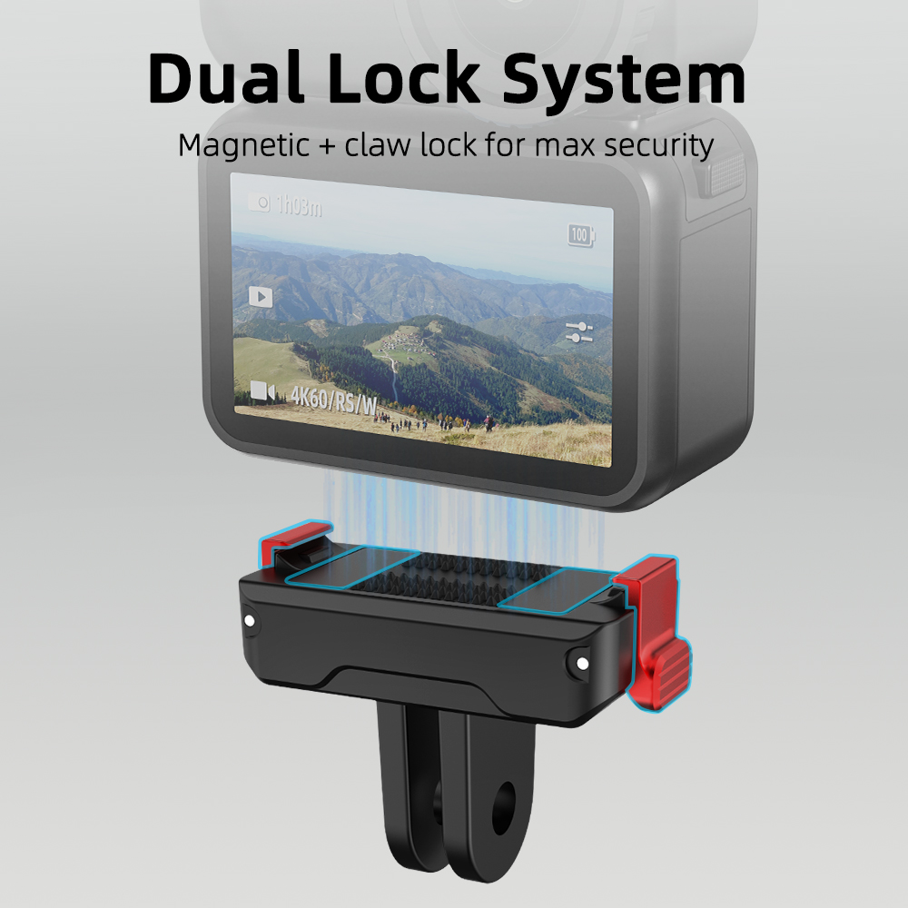 Dual Lock System,Magnetic + claw lock for max security. Shock Absorption,Silicone pad handles intense vibration. Stainless Steel Claw,Durable metal, won't break or wear. 2-Claw Base,Fits most accessories and mounts. Ultra Portable,Slim profile, easy to carry. Snap & Lock,Aligns magnetically, locks with a press.