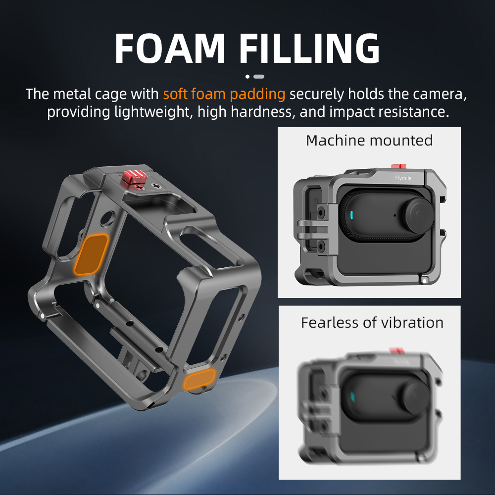 5.The metal cage with soft foam padding securely holds the camera, providing lightweight, high hardness, and impact resistance.