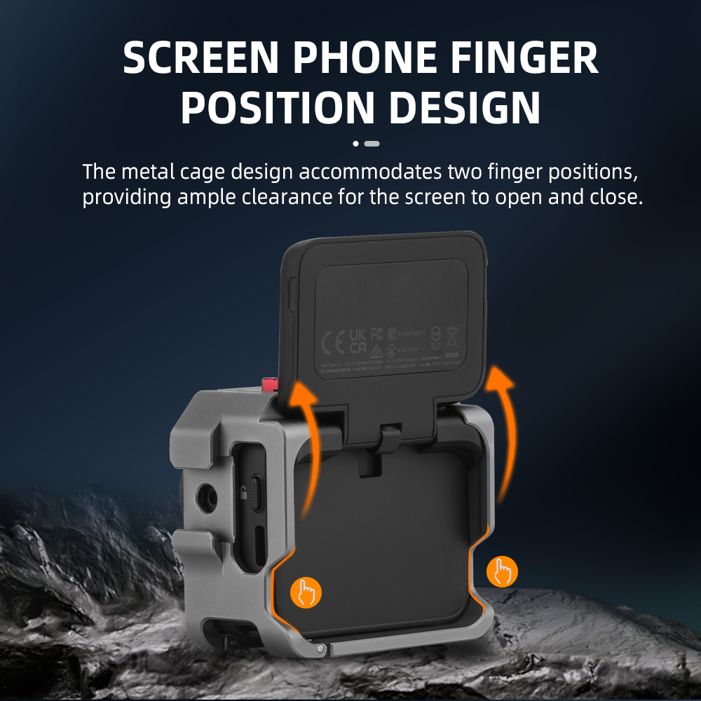 6.The metal cage design accommodates two finger positions, providing ample clearance for the screen to open and close.
