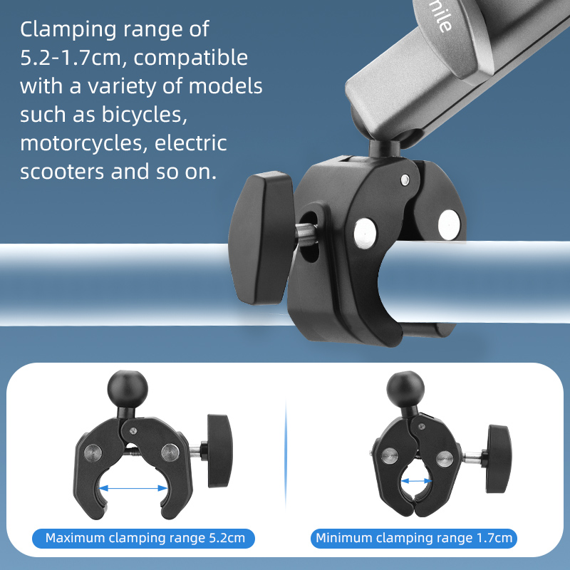 3. Wide range of holding clip, the maximum inner diameter of 5.2cm, the minimum inner diameter of 1.7cm,