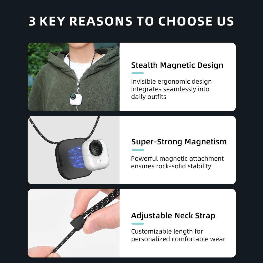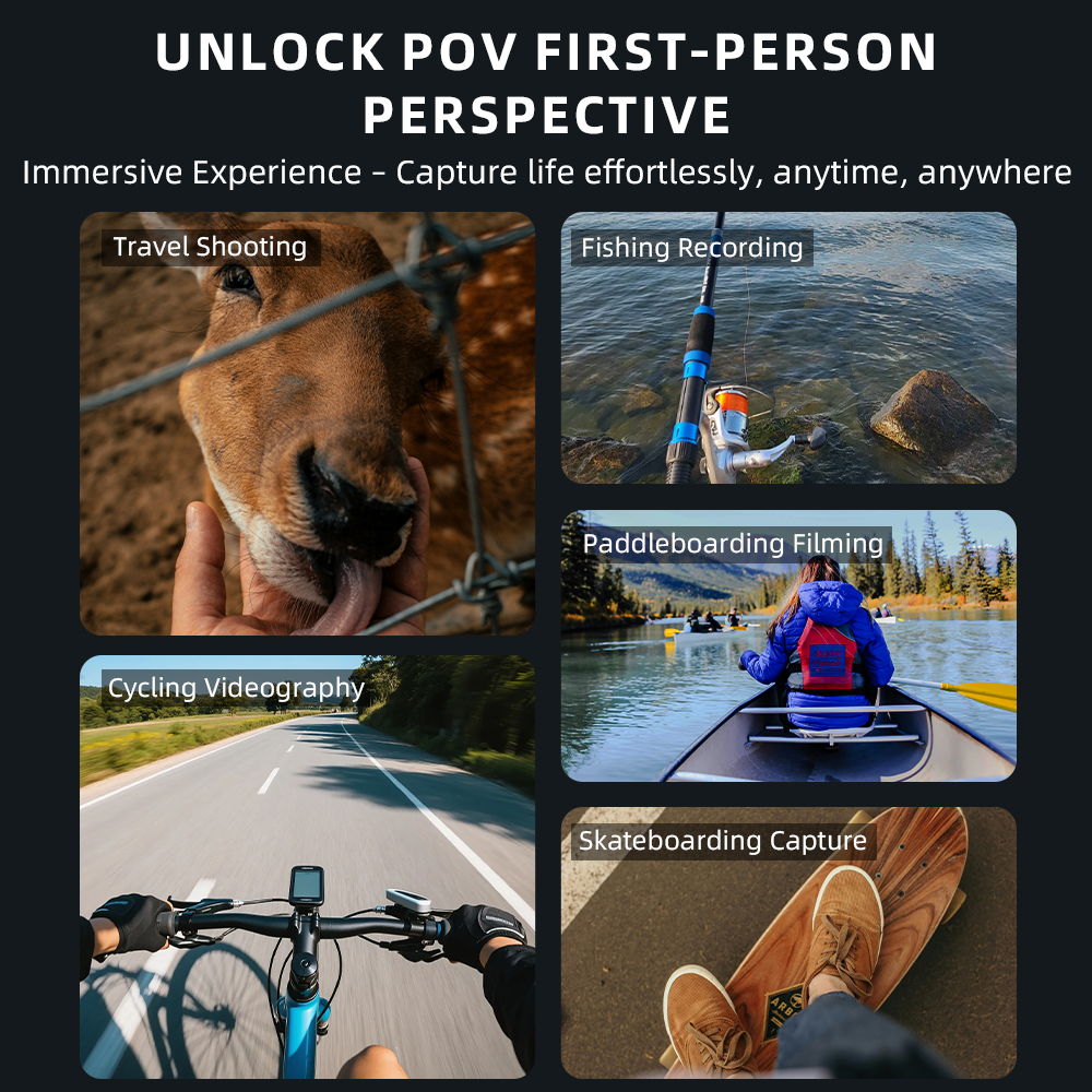 1.Hands-Free with Invisible Comfort2.Strong Magnetic Fit3.Adjustable Lanyard for Customized Length4.Compact and Ultra-Portable5.Unlock POV First-Person Perspective