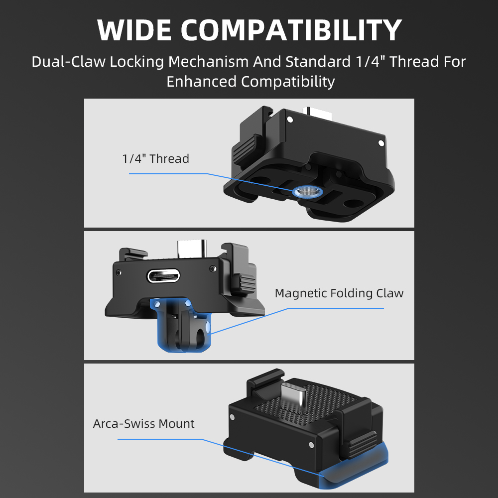 FULL-FUNCTION CONNECTIONLIGHTWEIGHT & SECUREMAGNETIC FOLDING DESIGNWIDE COMPATIBILITYCLASSIC BLACK & COMPACTCHARGE WHILE RECORDING