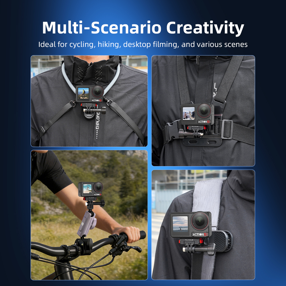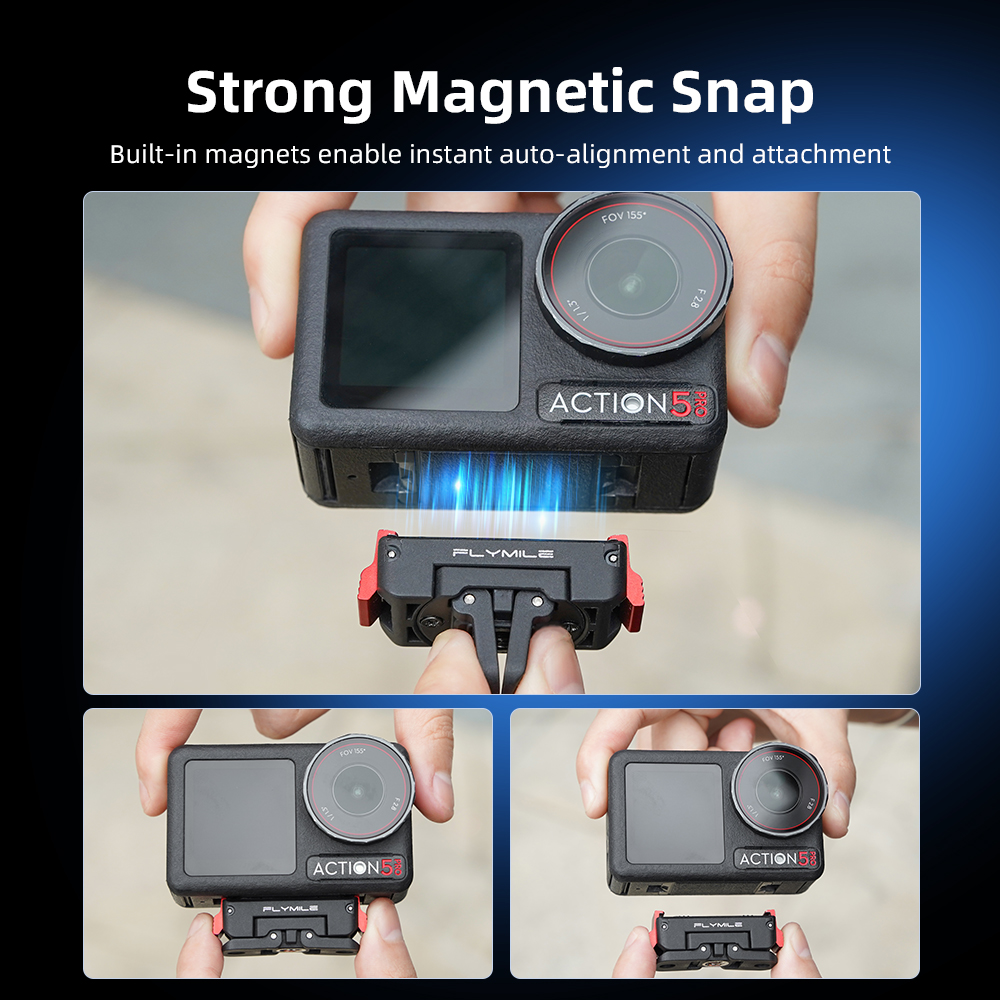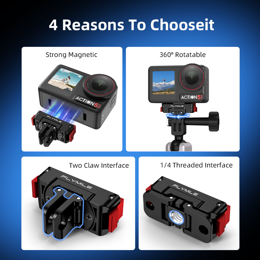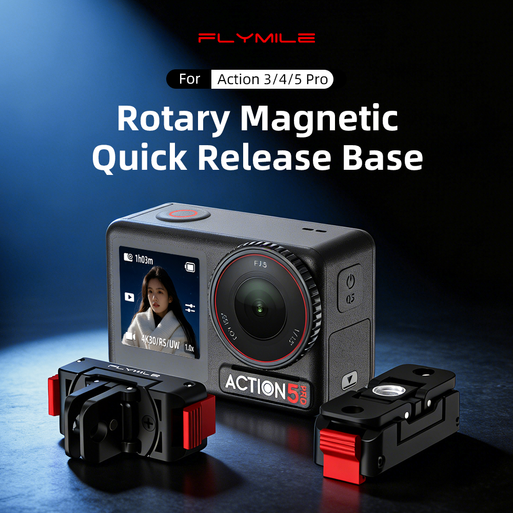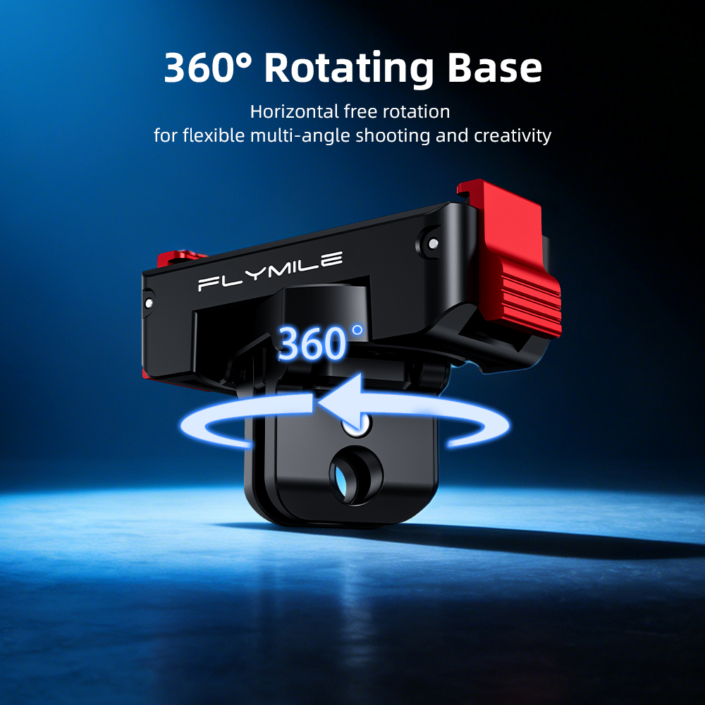 Strong Magnetic Snap Built-in magnets enable instant auto-alignment and attachment Wide Device Compatibility Adapt to multiple shooting devices and create freely and flexibly 360° Rotating Base Horizontal free rotation for flexible multi-angle shooting and creativity Dual Bottom Ports Combines action cam connector and 1/4” thread for versatile mounting Multi-Scenario Creativity Ideal for cycling, hiking, desktop filming, and various scenes Aluminum Lock + Silicone Metal lock and non-slip pad provide secure, dual-layer protection Compact & Portable Sleek, lightweight design for easy carry without adding bulk