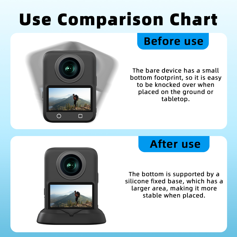 Secure & Scratch-proof – Sturdy stand, protects from bumps and scratches Soft Silicone – Smooth finish, comfortable grip, retains shape Precise Cutouts – Fits ports & buttons perfectly, no obstruction Wide Base – Stable stand, prevents tipping Smooth Texture – Comfortable, ergonomic grip Compact & Portable – Easy to carry, fits in pockets/bags Waterproof & Stain-proof – Easy to clean, resists fingerprints/oil Quick Release – Effortless on/off for hassle-free shooting