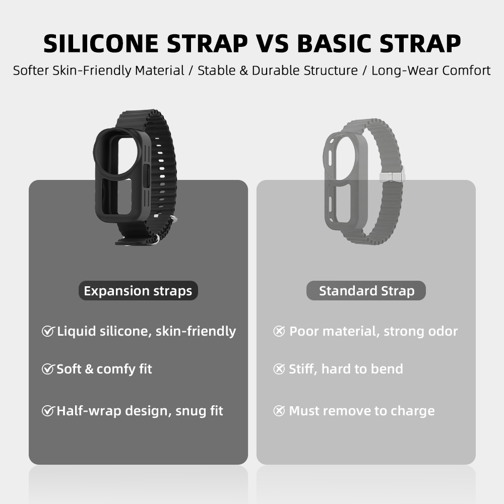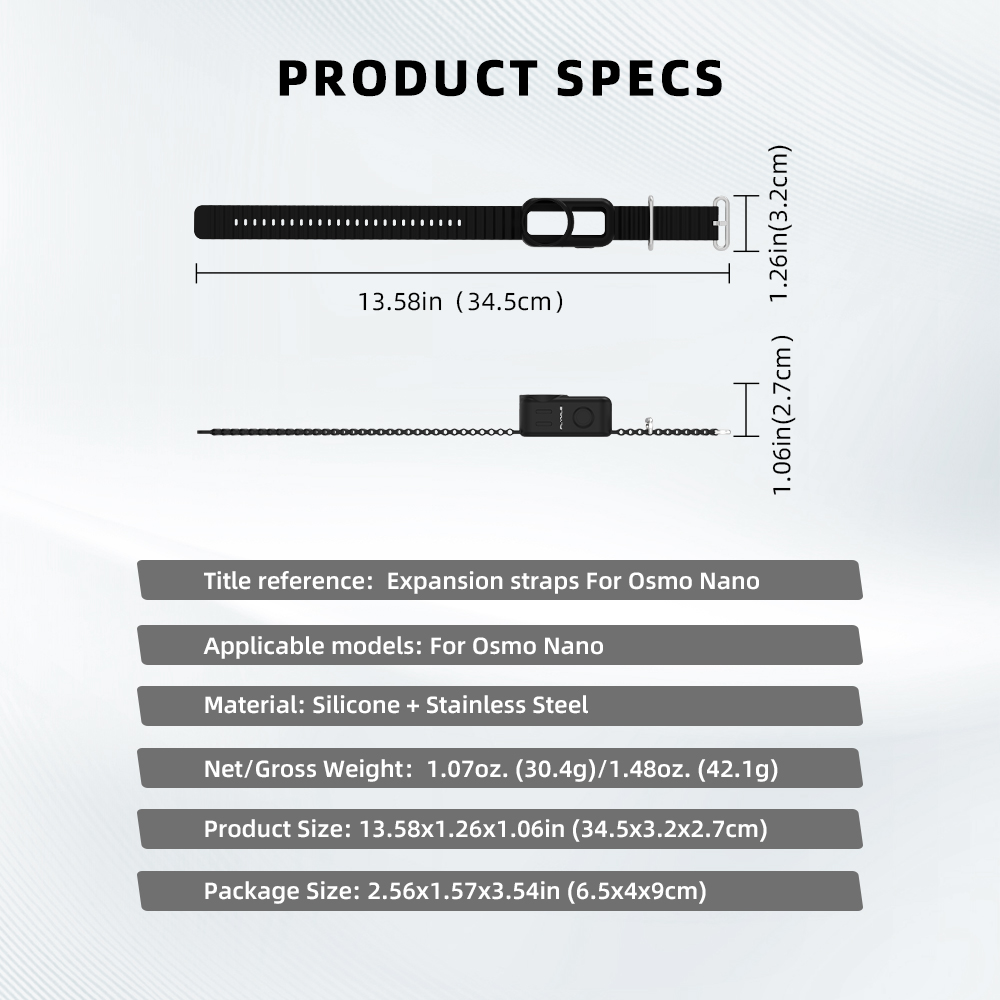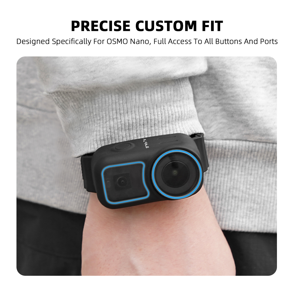 1.PRECISE CUSTOM FIT Designed Specifically For OSMO Nano, Full Access To All Buttons And Ports 2.VENTILATED COMFORT Open-Back Design Promotes Airflow For Cooler, More Comfortable Wear During Long Sessions 3.FLEXIBLE & DURABLE SILICONE Soft-Touch, High-Rebound Material That Holds Its Shape Through Repeated Use 4.ADJUSTABLE FOR A PERFECT FIT Slide Buckle Allows Easy Length Adjustment; Ventilated Holes Enhance Comfort 5.SKIN-FRIENDLY SOFT TOUCH Made With Skin-Safe Silicone For A Smooth, Comfortable Feel That's Gentle And Long-Lasting 6.EASY CLEAN, READY TO GO Dense Surface Resists Dust And Grime; Simply Rinse With Water Or Wipe Clean For Quick Maintenance