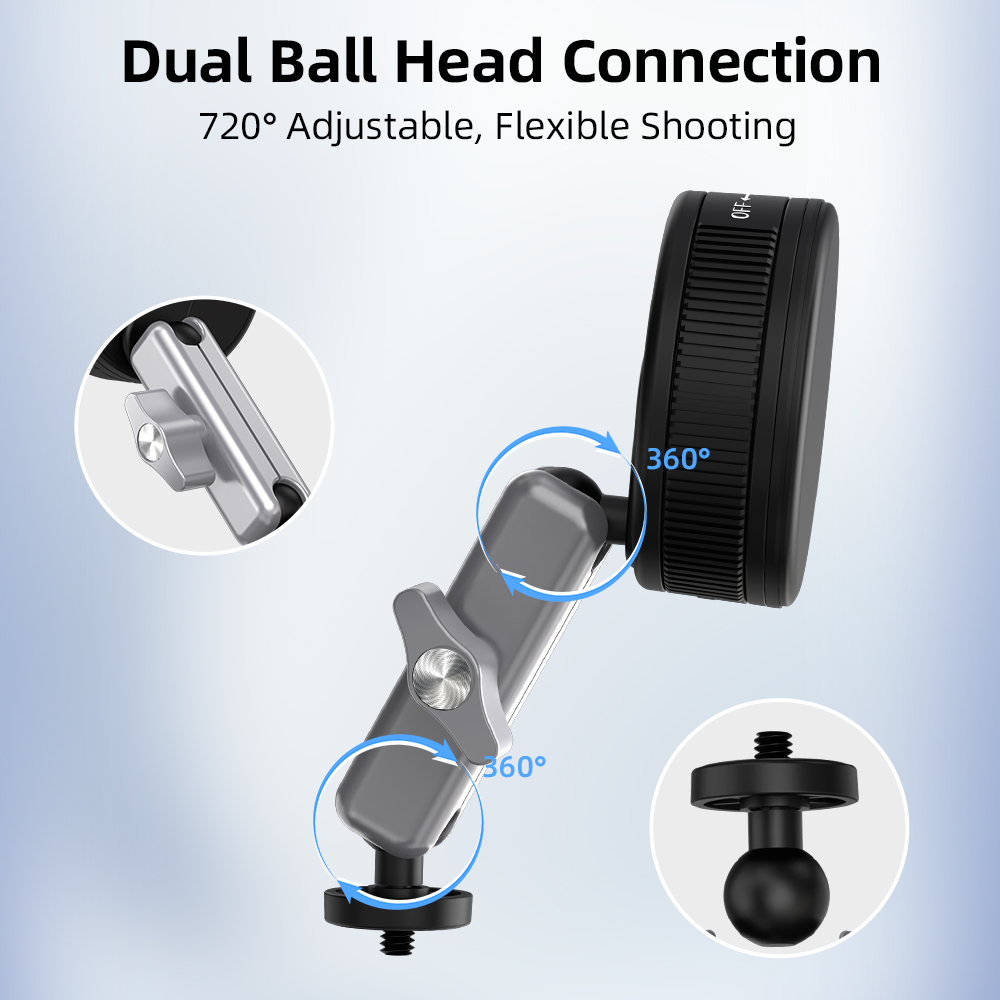 Incorporates a dual ball head connection design, supporting 720° flexible adjustment. It can be folded and rotated, effortlessly unlocking various shooting angles.