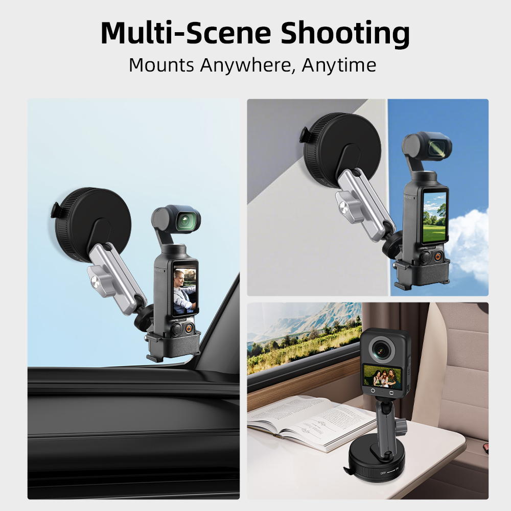 Can adhere to smooth, non-porous surfaces, making it suitable for multi-angle shooting in various scenarios such as indoors, outdoors, and on vehicles, enabling instant suction and shooting.